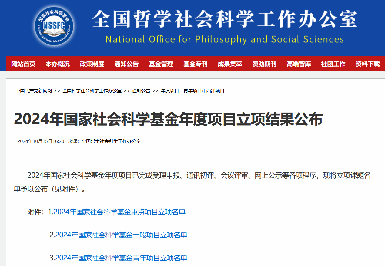 10月15日,全国哲学社会科学工作办公室发布了《2024年国家社会科学基金年度项目立项结果公布》。koko体育官网共获立9项年度项目,其中重点1项,一般3项,青年5项,分布于马列·科社、党史·党建、哲学、中国历史等学科。立项数在全国马院中位居前列。这是koko体育在申报国家级课题方面取得的重大突破,充分展现了学院的科研综合实力。