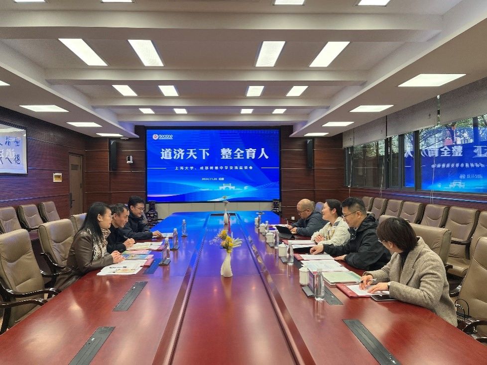 郭子其介绍了树德中学“人工智能教育”、“创新实验工作站”、“跨学科教育”“思政一体化”等人才培养的六大特色,并期待在贯通培养以及如何做好面向未来的教育方面得到高校更多的支持。陆瑾表示树德中学人文底蕴深厚,教育理念超前,在拔尖创新人才的培养上,我们有着共同的使命担当。作为高校,也非常荣幸和愿意贡献更多的高水平师资、高端讲座、高质量课程等助力一流高中拔尖创新人才培养。王国建表示,多次来访树德中学,友谊深厚,也感谢树德输送了大量优秀学子。未来,除了在招宣形式方式上可做更多的拓展外,在人工智能教育、大中小思政一体化建设等方面亦可协作共进。