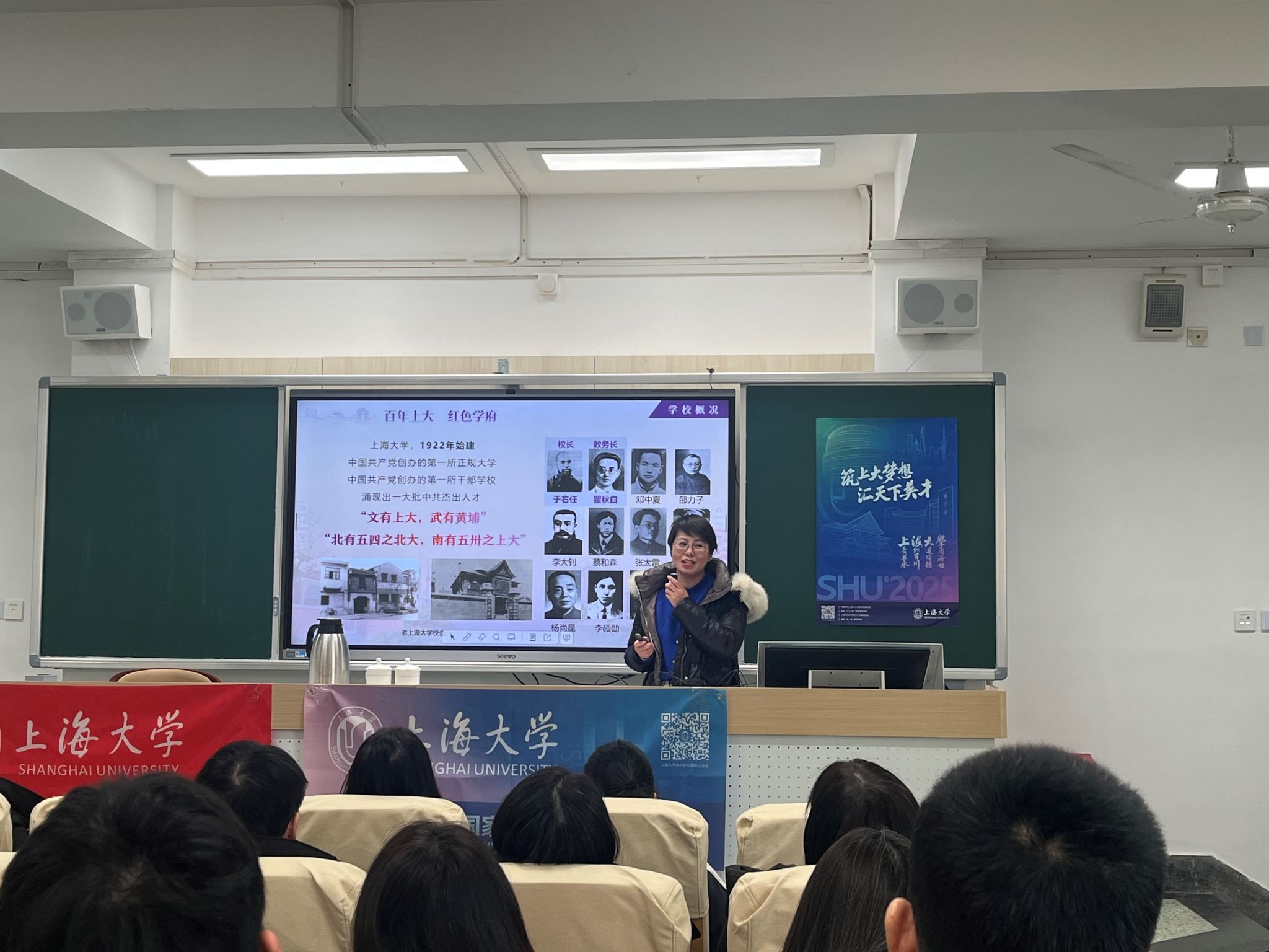 1月10日下午,koko体育官网招生就业处副处长卢欣,koko体育官网党委副书记、副院长张印兰,招宣组教师黄丽娜以及“我为上大代言”寒假社会实践学生团队成员一行,前往上海市控江中学参加2025年校园开放日活动,并开展招生宣传与咨询。招生宣讲会由控江中学教导处副主任谈荣老师主持,百余位控江中学师生及家长参与了此次活动。